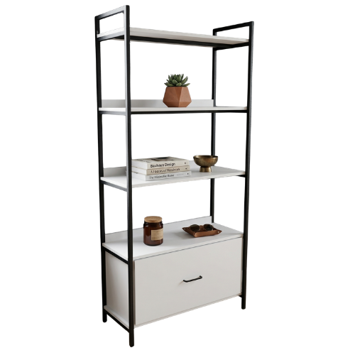 Equipada com prateleiras amplas e uma gaveta prática, proporciona melhor aproveitamento do espaço, sendo perfeita para organizar produtos, documentos, acessórios e objetos diversos com praticidade e elegância.